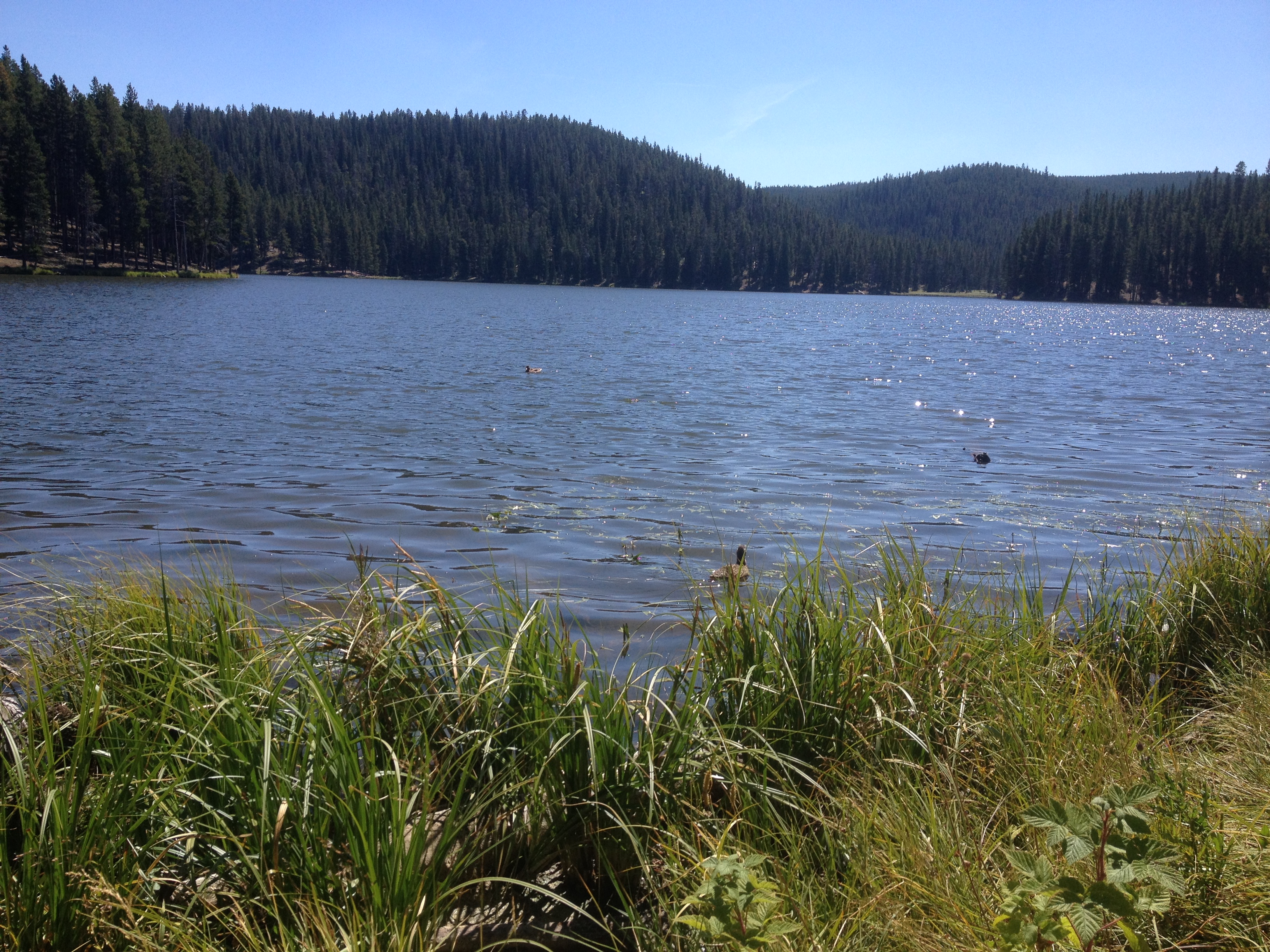 My Blue Stallion and I had an agreement: everyday I’ll stop and take a walk for at least 1 hour so we’re not just driving through endlessly. That day, as already mentioned was a long one, but shortly after Burgess Junction on Route 14 (we’re in Wyoming -), a lake appeared on my right side. “Stam Lake” (just a lake), I called it between me and myself. There is no obvious sign, no national park, no entrance fees, no tourists, just a gorgeous, deep blue water, dark green trees – lake. I park, take my phone as camera (no reception) and walk down. Then I see- a trail. And here the magic: the ability to trust the trail. I have no map, no backpack, nothing. But there is a trail, and I know it’s going to be ok. There are a few people, couples, families, local license plates, fishing, “chilling” – hats down, polls stretched out, kids and friendly dogs wading; evidence for beaver and baby ducks in water. It’s so beautiful and so peaceful, I almost run the whole circumference in joy.