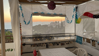 | ומתוך המראות, עולים עוד כמה זכרונות… אני בת 4 או 5. לשכנים בבית ליד יש סוכה וגם אני רוצה, ואין, ואי אפשר, ואין מי שיבנה, ואין איפה, ומספיק כבר, אבל אני רוצה. ולבסוף ההורים שלי מציעים פשרה: אנחנו מביאים הביתה ארגז קרטון ריק מהמכולת. הופכים אותו עם החלק הפתוח כלפי מעלה. אח”כ אנחנו אוספים כמה ענפי עץ אורן קטנים מבחוץ. אני מכינה שרשרות צבעוניות קטנטנות, ובונה שלחן ושני כסאות מקוביות לגו, וכשהכל מוכן, אני רצה לחדר, ומזמינה את האושפיזין שלי, הבובות וגם הדובי. הם יושבים להם שם, ושותים תה, מאושרים עם הסרויס צעצוע. ולפעמים, כשאני חושבת שאף אחד לא מסתכל, גם אני שוכבת לי על רצפת הבלטות הקרירות ומכניסה את קצה הראש שלי פנימה. והנה, אני בסוכה! | And through the sights, a few more memories emerge… I am like 4 or 5 years old. The neighbors next door have a sukkah and I want one too, and there is none, and it’s impossible, and there’s no one to build one, and there is no room, and enough already, but I want one. And finally my parents offer a compromise: we bring home an empty cardboard box from the grocery store. Turn it over with the open side up. Then we collect some small pine-tree branches from outside. I make tiny colorful chains, and build a table and two chairs from Lego blocks, and when everything is ready, I run into the room and invite my Ushpizin, my dolls and the teddy bear. They sit there, “drinking tea”, happy with the toy-dish-set. And sometimes, when I think no one is looking, I too lie down on the cool tile floor and stick the tip of my head in. And here I am in the sukkah! |