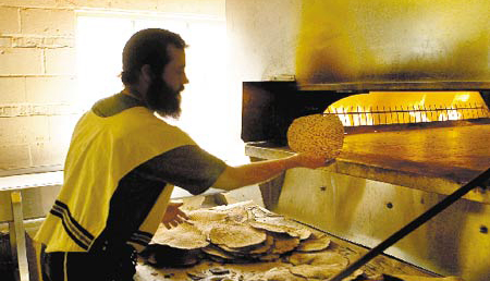 | What’s important about baking matzah is that the entire process, from the moment the water comes into contact with the flour, will be completed within 18 (“chai”) minutes. The way of baking, kneading, opening the matzah, and the style of oven, differ from place to place, as is the final product: in the past (and still today among Yemenite Jews) matzah is relatively soft like a large pitta (laffa) but nowadays, the matzah is usually hard like a cracker. Also, a handmade matzah will usually be round, compared to a machine made matzah which is usually square. In preparation for Passover, there may be opportunities to visit and/or see workshops – and try out making matzah in different places in Israel and around the world. Recommended! | החשוב באפיית מצות הוא שהתהליך כולו, מרגע מגע המים עם הקמח יסתיים תוך 18 (ח”י) דקות. צורת האפייה, הלישה, פתיחת המצה, וסגנון התנור, שונים ממקום למקום, וכך גם המוצר הסופי: בעבר (ועד היום אצל יהודי תימן) המצה הייתה רכה יחסית כמו לאפה, אבל כיום, המצה בד”כ קשה כמו קרקר. כמו כן, מצה תוצרת יד בד”כ תהיה עגולה, לעומת מצה ממכונה שהיא בד”כ מרובעת. לקראת חג הפסח, יתכנו הזדמנויות לבקר ו/או לראות סנדאות להכנת – והתנסות בהכנת – מצות במקומות שונים בארץ ובעולם. מומלץ! |