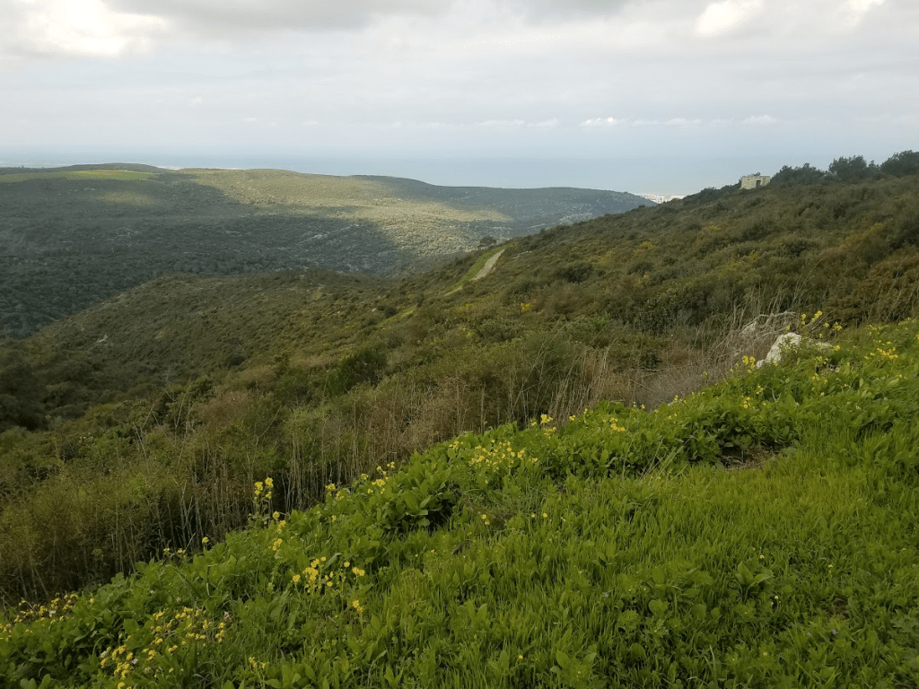 | At some point, the threat from the north was removed, but then a threat from the south arrived. In 1942 the entire Carmel was declared a closed military area. Ideas and words like “Masada in Carmel” and “Musa-Dag” were thrown around, but the “200 days of anxiety” – that’s what the period was called because of the danger of annihilation that seemed immediate and imminent – passed without the need to use the fortifications. In various places in Carmel, and not far from my home – if you visit, there are still remnants from that era, bunkers and anti-tank angle iron. When I see them (almost daily), I’m reminded, especially in light of some current doom prophecies, that, despite everything, not all our worst fears and anxieties come true, and I can only hope we remember to pay more attention to the holiness and beauty around us. | בשלב מסוים, האיום מהצפון הוסר, אך אז הגיע איום מהדרום. ב-1942 הכרמל כולו הוכרז שטח צבאי סגור. נזרקו רעיונות ומילים כמו “מצדה בכרמל”, ו”מוסה-דאג”, אך “200 ימי החרדה” – כך נקראה אותה תקופה ע”ש סכנת ההשמדה שנדמתה מיידית וקרובה- עברו בלי צורך להשתמש בביצורים. במקומות שונים בכרמל, לא רחוק מביתי, אם תבואו לבקר, יש עדיין ממצאים מאותה תקופה, בונקרים וברזלי זוית נגד טנקים. כשאני רואה אותם (כמעט כל יום), אני נזכרת, במיוחד לנוכח בואות הזעם סביב, שלמרות הכל, לא כל הפחדים והחרדות הגרועים שלנו מתממשים, ואני מקוה שנזכור לשים לב יותר דוקא לקדושה וליופי סביבנו. |
