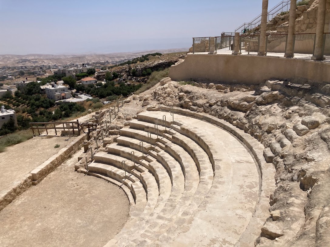 | Gush Etzion is a mountainous area between Jerusalem and Hebron whose peaks reach a height of 950-997m above sea level, but its configuration is “calm” (unlike the steeper Shomron / Samaria) with several flowing springs. Its eastern part sit on the edge of the Judean Desert, where stands, on an artificial hill, visible from the distance, Herodion Fortress – or “Mount Herod”, today a national park under the management of the Nature and Parks Authority (RTG) which is available – and highly recommended – for a visit. | גוש עציון הוא איזור הררי בין ירושלים וחברון שפסגותיו מגיעות לגובה 950-997מ’ מעל פני הים, אך תצורתו “רגועה” (לא תלולה כמו השומרון) ובו נובעים גם מספר מעיינות. חלקו המזרחי נמצא בספר (ס’ בשווא, במובן גבול) מדבר יהודה, שם עומד, על גבעה מלאכותית, נראית למרחוק, מבצר ההרודיון – או “הר הורדוס”, כיום גן לאומי בניהול רשות הטבע והגנים (רט”ג) שניתן – ומומלץ מאד – לבקר בו. |