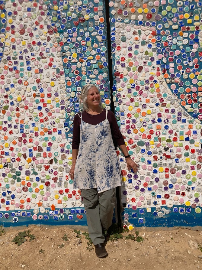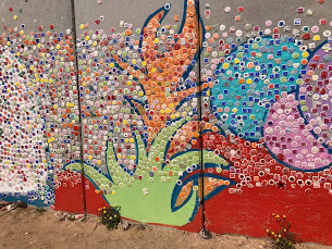 | One of the local residents decided to turn the gray and menacing wall into an art project called – Netiv LeShalom, Path to Peace, a mosaic project by thousands of people, created “for the sake of hope, love and joy between human-beings”… The work can be seen on both sides of the wall. Visitors to the place are offered a short movie about life in the Gaza Strip that allows them a glimpse into life near the wall, the historical events here as well as the beautiful life in the moshav with optimism, tolerance and the creation of hope. The project invites “visitors to take an active part in creating a wall for peace. Each guest writes a personal wish on a colorful mosaic tile and sticks it on the security wall. The mosaic pieces are handmade in the Netiv LaShalom workshop. Among the colorful and optimistic pieces, we can find different designs such as flowers and butterflies, mosaic pieces with the word peace in different languages and more.” | אחת מתושבות המקום החליטה להפוך את החומה האפורה והמאיימת לפרויקט אומנות שנקרא – נתיב לשלום, יצירת פסיפס של אלפי אנשים, שנוצרה “למען התקווה, האהבה והשמחה בין בני האדם”… את היצירה אפשר לראות משני צידי החומה. למבקרים במקום מוצע סרט על החיים בעוטף עזה שמאפשר להכיר את החיים בצל החומה, האירועים ההסטוריים וגם החיים היפים במושב באופטימיות, סובלנות ויצירת תקווה. הפרויקט מזמין את “המבקרים לקחת חלק פעיל ביצירת קיר לשלום. כל אורח כותב משאלה אישית על גבי אריח פסיפס צבעוני ומדביקו על גבי חומת הבטחון. חלקי הפסיפס מיוצרים בעבודת יד בסדנת נתיב לשלום. בין החלקים הצבעוניים והאופטימים, נוכל למצוא עיצובים שונים כגון פרחים ופרפרים, חלקי פסיפס עם המילה שלום בשפות שונות ועוד”. |