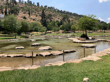 | Above the spring with its lawns and the pleasant pool in it, is the home of Yehoshua and Olga Hankin: he is the well-known Land redeemer, and she is a midwife who, despite being barren herself, helped the women of the area, Jewish and Arab, give birth to their children, when often it was her business that helped his business… The house above the spring, which they did not get a chance to inhabit, is now a small museum of the history of the settlement in the valley, next to which is also a monument to the area’s sons and daughters who fell combat. The place can be reached by a trail that winds up from the spring to the slopes of the Gilboa. | מעל למעין על המדשאות והברכה הנעימה שבו, נמצא ביתם של יהושע ואולגה חנקין: הוא גואל הקרקעות הידוע, והיא – מיילדת שלמרות היותה עקרה בעצמה, עזרה לנשות האיזור, יהודיות וערביות, ללדת את ילדיהן, כשלא פעם דוקא עסקיה הם אלו שעזרו לעסקיו… הבית מעל למעין, שלא הספיקו לגור בו, כיום הוא מוזיאון קטן לתולדות ההתיישבות בעמק, שלידו גם אנדרטה לבני העמק שנפלו במערכות ישראל. אפשר להגיע אליו בשביל העולה מן המעיין אל מדרונות הגלבוע. |