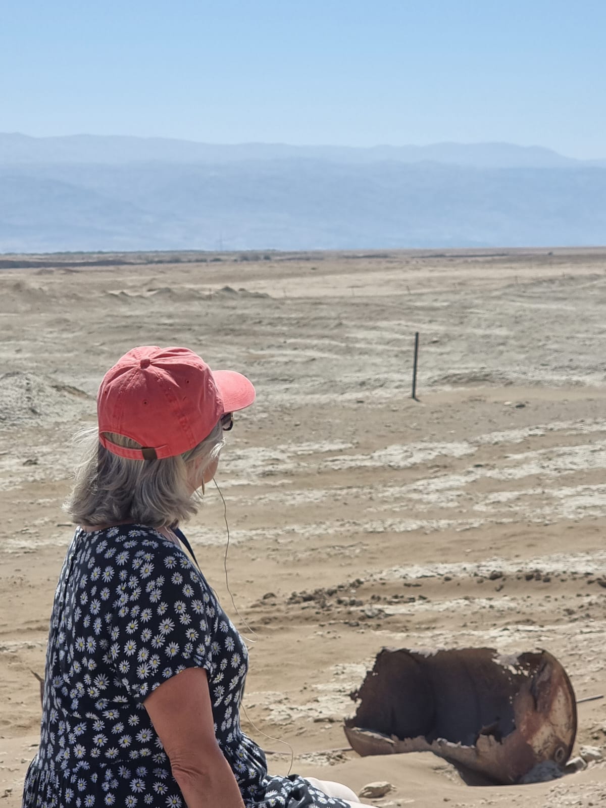 Last week, just north of the Dead Sea with Mt. Nevo in the background… paraphrasing on Deut 32:52: ‘for from afar you shall see Mt. Nevo but there you will not go’…