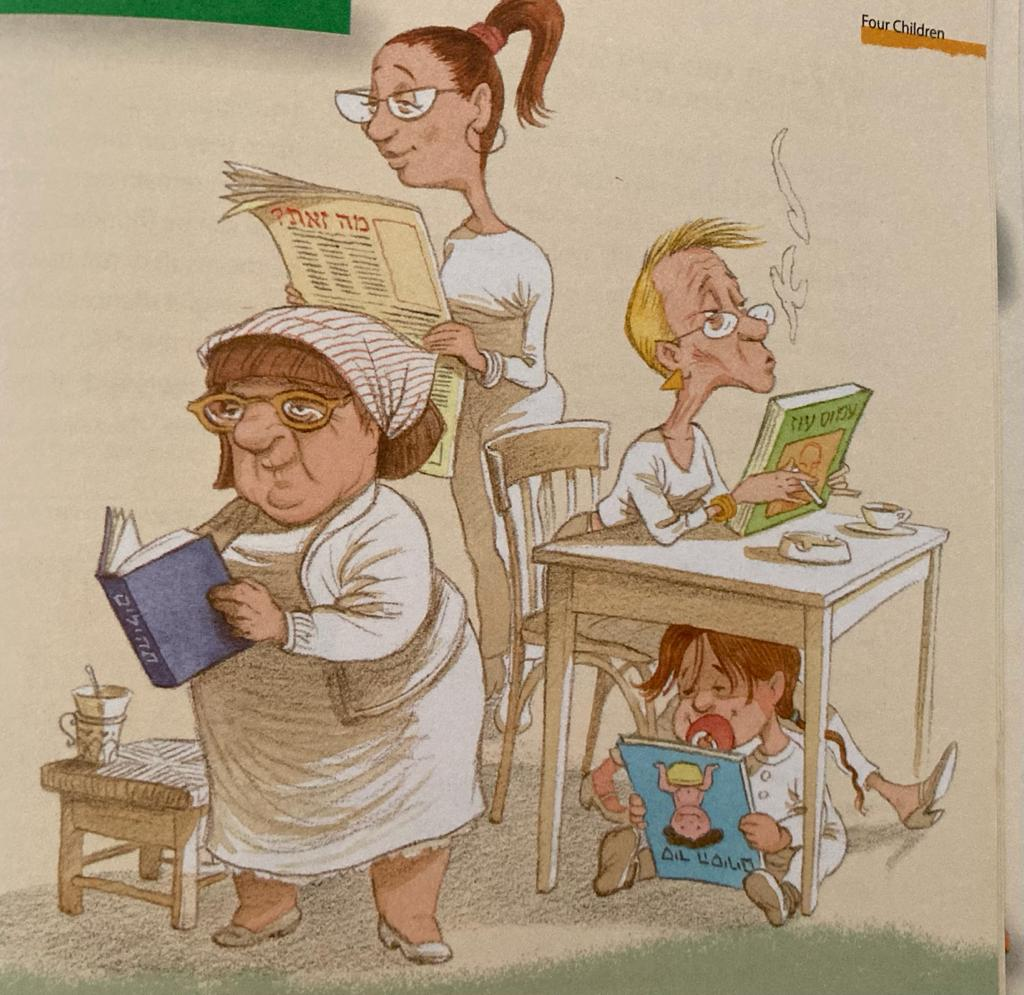 | Further: Rav Adin Steinzaltz suggests that the sons here are not necessarily arranged in horizontal order as if they were all standing in a circle at the same time, but in vertical order, that is – intergenerational. Thus, the first generation was the “wise” (one can think of our grandparents and their connection to the Jewish world). The next generation, the rebels, kicked and asked – “What is this to you? For you and not for him”… The following generation, grew up in the house of the rebellious generation, and saw grandfather doing strange things, like keeping kosher and going to shul… The following generation, grew up in the house of the Tam, se, with his very little knowledge, and with the “rebellious” grandfather. Yes, sometimes he tells how his great-great-grandfather was a rabbi, but he himself hardly knows what to ask… about this generation it’s been said, “And you tell your children”… We must tell and say; teach and not give up. Then, hopefully, we will be able to see this generation awakening, as is happening in a most exciting ways all around us today. | ומעבר לכך: הרב עדין שטיינזלץ מציע שהבנים כאן אינם בהכרח מסודרים בסדר אופקי כאילו כולם עומדים במעגל בו-זמנית, אלא בסדר אנכי, כלומר – בין-דורי. כך, הדור הראשון היה ה”חכם” (אפשר לחשוב על סבי-סבנו והקשר שלהם לעולם היהודי). הדור הבא, התמרד, בעט ושאל – “מה העבודה הזאת לכם? לכם ולא לו”… הדור שלאחר מכן, גדל בבית של הדור המתמרד, וראה את סבא עושה דברים מוזרים, שומר כשרות והולך לבית הכנסת… הדור שלאחר מכן, גדל בבית של התם, עם הידע המועט ביותר שלו, ועם הסבא ה”מתמרד”. כן, לפעמים הוא מספר שסבא-רבא שלו היה רב, אך הוא בעצמו, בקושי יודע מה לשאול… על הדור הזה נאמר, “והגדת לבנך”. עלינו לספר, להגיד. לא לוותר. ללמד. ואז, ב”ה, נוכל לראות את הדור הזה מתעורר, כמו שקורה בצורה מרגשת ביותר היום סביבנו. |